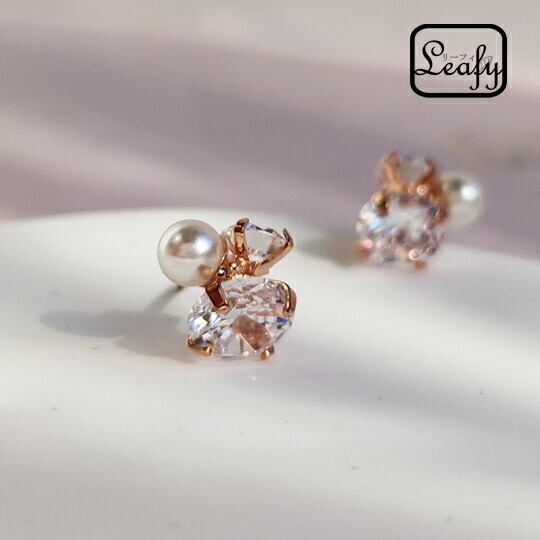 Leafyジルコニアと真珠が美しく調和して、耳元を華やかに演出するピアスx07933a-pg ピンクゴールド (pink gold)【定形外・メール便対応】誕生日プレゼント 冠婚葬祭 入園式 入学式 卒業式 卒園式 ホワイトデープレゼント 記念日 結婚記念日 母の日
