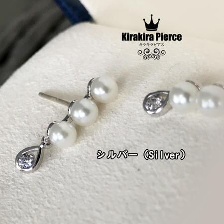 Leafy☆連なるパール&キラキラリーフモチーフピアス 小ぶりなパールと揺れるリーフの可愛い組み合わせが爽やかでキュートなピアス ガーリーなファッショにはもちろん、パールのさりげないお上品なデザインがフォーマルにも◎シルバーx08352y-sliver【メール便対応】☆