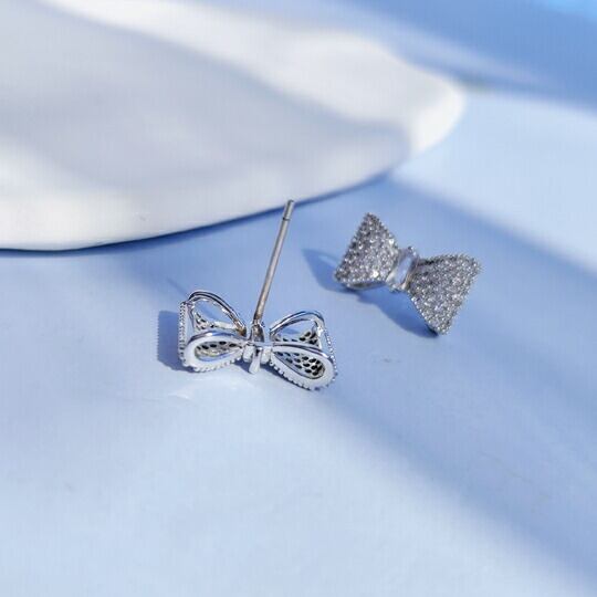 Leafy リボンモチーフキラキラピアス 4月誕生石 耳元が可愛らしいフェミニンな印象に♪可愛らしい中にもジルコニアの結び目が上品で大人っぽいエレガントなデザインに仕上がりました☆春の行楽シーズン・お出かけにも♪pierce-X08370Y-Silver(シルバー)