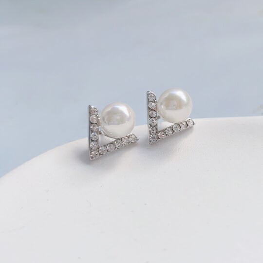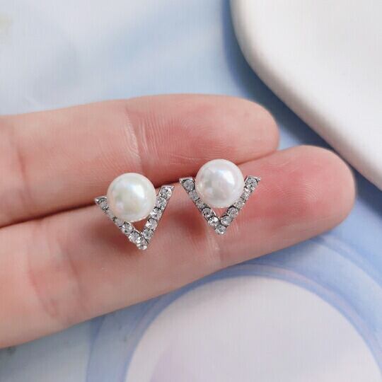 Leafyキラキララインスト文字“V”インスピレーションを得てデザインした、 見る角度によって表情を変えるパールピアス シンプルな美しさとボリューム感を兼ね備えていますピアス 冠婚葬祭 入園式 入学式 卒業式 卒園式 x08515Y-s