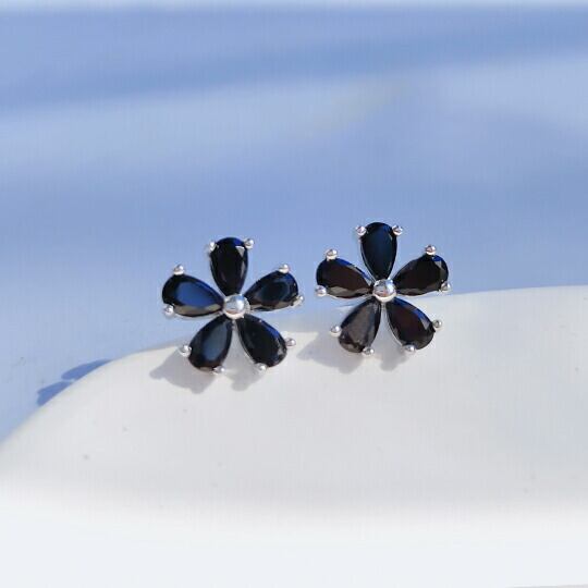 Leafy ブラック色CZフラワーモチーフピアス ブラックキュービックジルコニアのシャープで都会的な雰囲気と女性らしさが融合した、モダンでフェミニンな小花モチーフアクセサリーをお楽しみください 黒のジルコニアのお花が耳元を大人可愛く演出 エレガント x08644abk