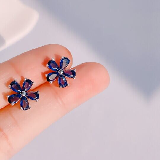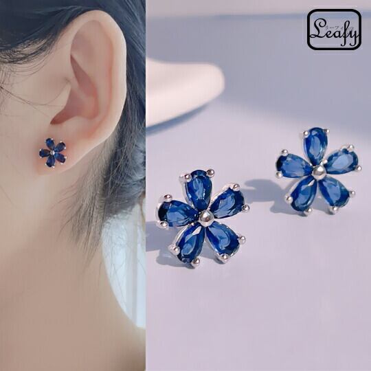 Leafy 透明度高いCZフラワーモチーフピアス さくらピアス サファイヤ風 キュートな紺色ジルコニアのお花が耳元を大人可愛く演出してくれます。エレガントで華やか・魅力的な印象に♪パーティー・参観日♪秋 オータム ブルー フラワー x08644ana