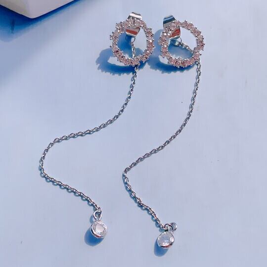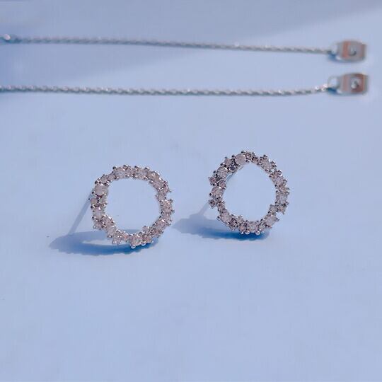 Leafyリーフィ☆新作☆ゆらゆら2WAYCZドロップピアスチェーンを取り外して、キラキラジルコニアサークルだけのピアスとしてご使用いただくこともできます。x09020as ロングピアス