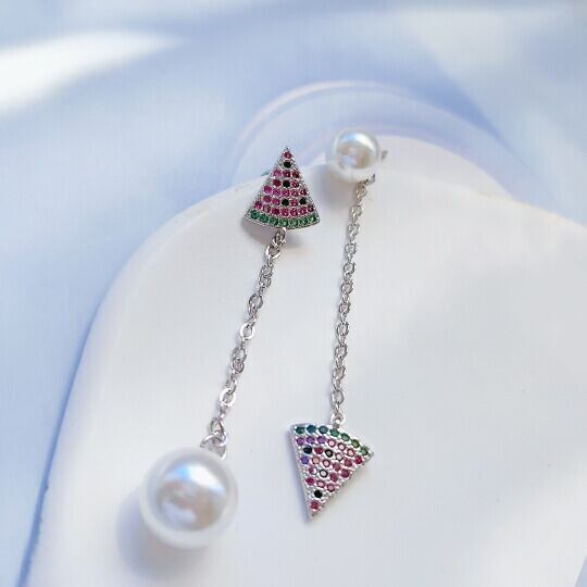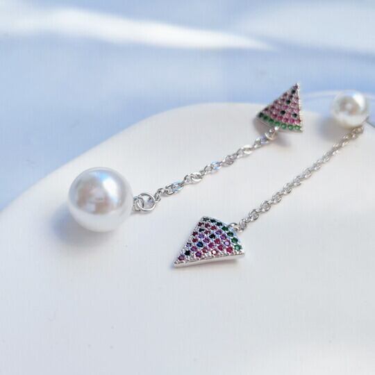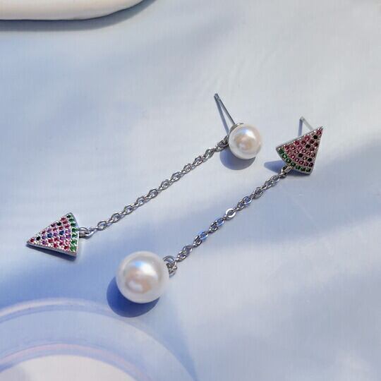 Leafyリーフィ きらきらジルコニアCZが眩しいスイカとパールのチェーンピアス 1ペア 涼しげ ユニーク 夏 サマー 西瓜 ウォーターメロン 海 砂浜 浜辺 ビーチ 果物 フルーツ 冠婚葬祭 入園式入学式 卒業式 卒園式 pierce-x09024a