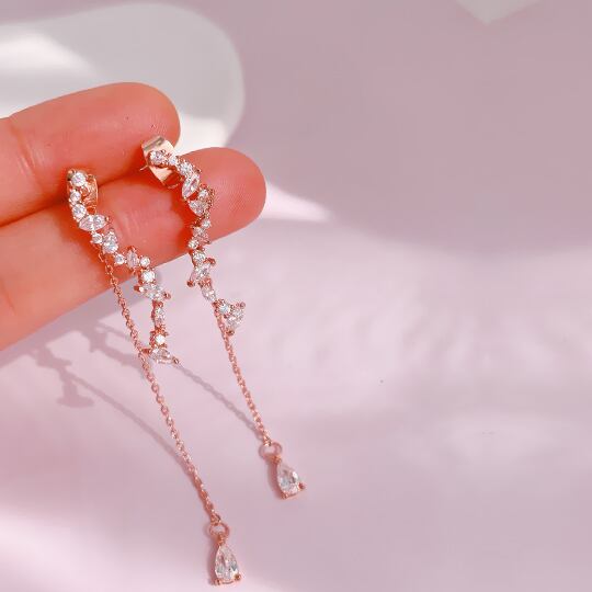 Leafyリーフィ☆ジルコニアのチェーンピアス 1ペア ロングシルエットが、小顔効果を演出!気軽につけるだけで、華やかなアクセントに レディース プレゼント ギフト 普段使い お出かけ お呼ばれ パーティー 二次会 x09028apg