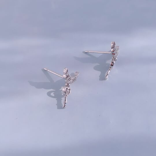 Leafyリーフィ 幸せを招く天使の翼とハートの鍵モチーフピアス 1ペア 動くたびに耳元でハートのキーが可愛く揺れます レディース プレゼント普段使い お出かけ パーティー エンジェル ウィング 羽 キーシルバー S925ポスト silver x09064as