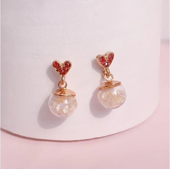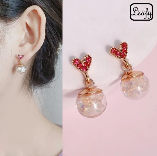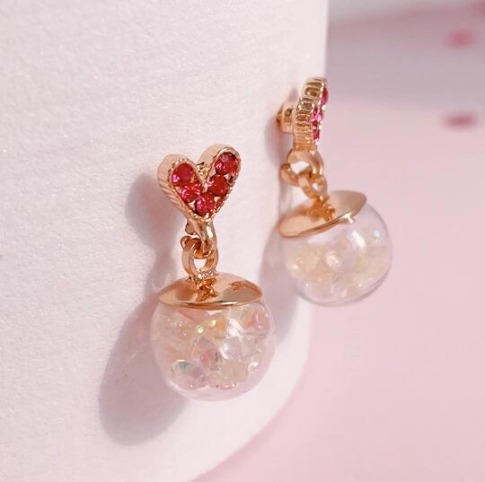 Leafy ころんとした小さいフォルムが可愛いハートピアス 1ペア レディース ゆらゆら 揺れる ドーム 純白 ピンク ロマンチック ジルコニア お出かけ イベント パーティー 二次会 食事会 女子会 デート 普段使い プレゼント x09115a