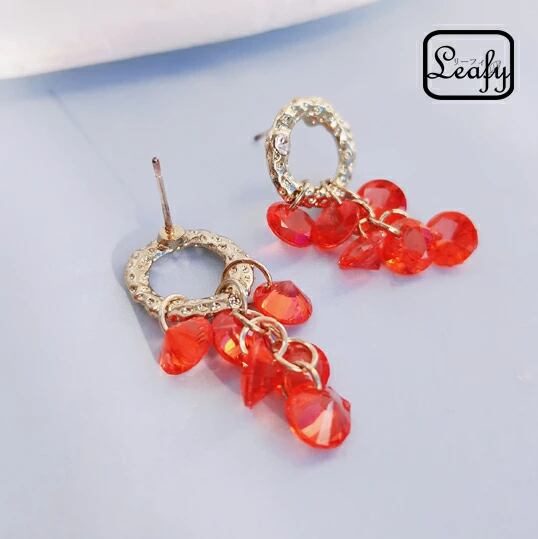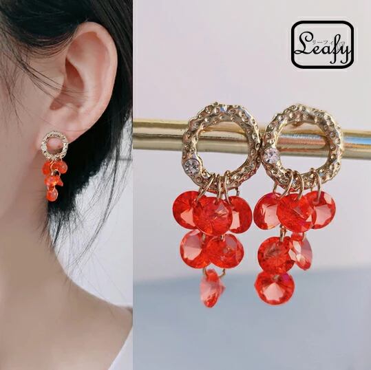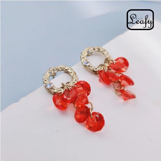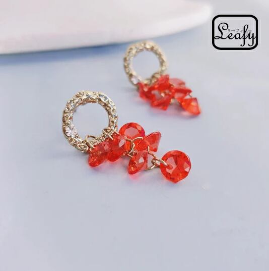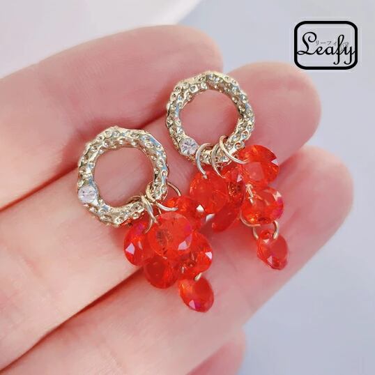 Leafy ピアス 1ペア レディース レッド 赤 緋色 オレンジ 大きめ 存在感 リング 輪 サークル ビーズ ざくろ フルーツ 果物 お出かけ パーティー デート 普段使い 葡萄 浴衣 着物 花火大会 夏祭り x09117ar 3月誕生石
