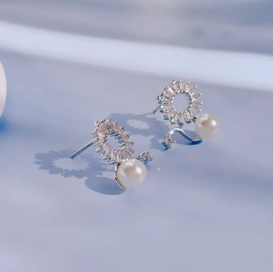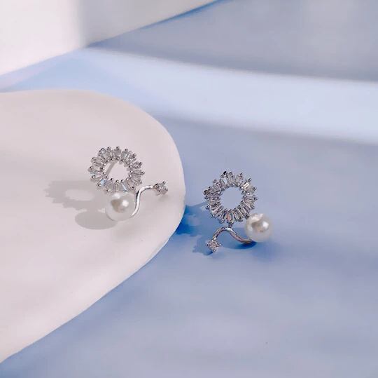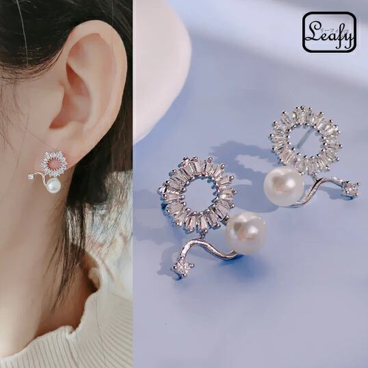 Leafy ピアス 1ペア レディース リング 輪 サークル ジルコニア パール 真珠 曲線美 華やか おしゃれ 普段使い お出かけ パーティー 結婚式 入学式 卒業式 入園式 卒園式 デート プレゼント 冠婚葬祭 入園式 入学式 卒業式 卒園式 x09139a 6月誕生石