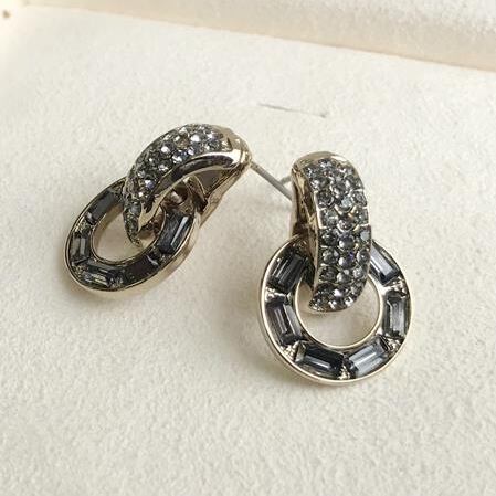 Terse 大人の雰囲気を醸し出すラインストーンピアス 1ペア おしゃれしたい時はもちろん気分を変えたい時にもどうぞ レディース おしゃれ お出かけ 二次会 パーティー お呼ばれ シンプル モデン グレー 灰色 ブラック 黒x09161a