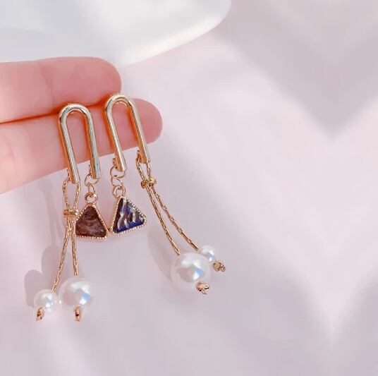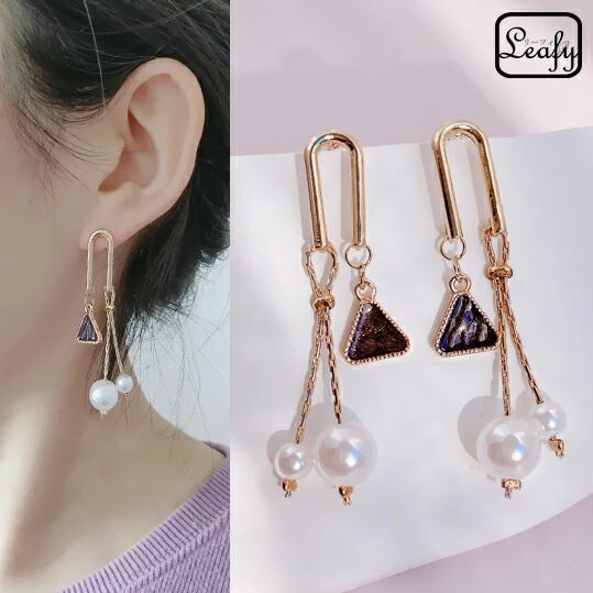 Leafy 存在感抜群!逆U字の個性的デザインピアス 1ペア レディース チョコブラウン 気合を入れてお洒落をしたい時に! 大振り 小顔効果 ゴールド パール 真珠 三角 トライアングル 揺れる お出かけ イベント デート プレゼント x09166abr
