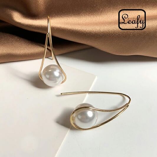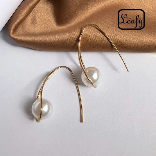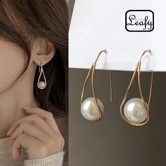 Leafy 曲線が柔らかな印象を放つパールピアス 1ペア レディース 程よい存在感 いろんなコーデに合わせやすいデザイン ドロップ 真珠 ワイヤー フック お出かけ イベント パーティー 二次会 食事会 女子会 デート 普段使い プレゼント x09170a 冠婚葬祭 入園式