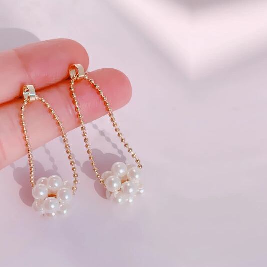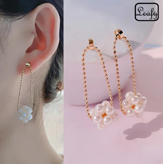 Leafy ゆれ感も可愛い☆ネックレスのようなパールボールピアス レディース 1ペア スウィング 上品 エレガント 存在感 ボリューム ボールチェーン 真珠 お出かけ パーティー 二次会 食事会 女子会 デート イベント プレゼント x09177a 6月誕生石