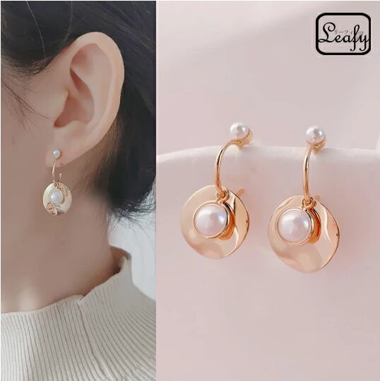 Leafy ゴールドにパールが映える大人ピアス 1ペア レディース 丸いプレートはほんのりカーブしたフォルム こなれ感 シンプル リッチ 真珠 お出かけ イベント パーティー 二次会 食事会 女子会 デート 普段使い プレゼント x09180a 6月誕生石
