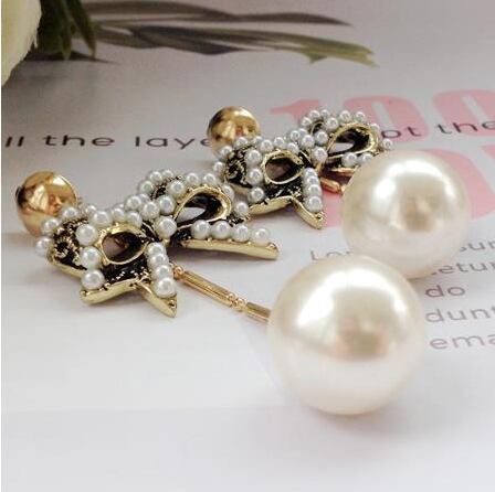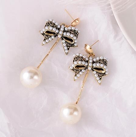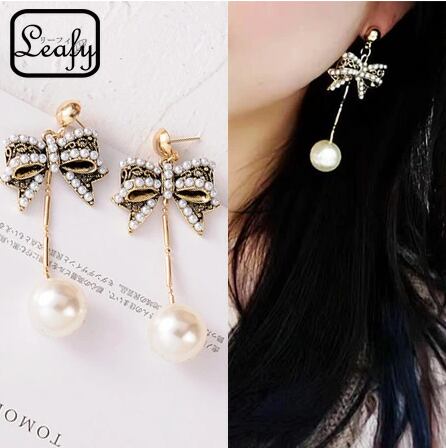 Leafy パールをあしらったリボンピアス 1ペア レディース 大粒パールもポイントに ゆれ感 立体的 結び 真珠 お出かけ イベント パーティー 二次会 食事会 女子会 デート 普段使い プレゼント 入園式 入学式 x09184a