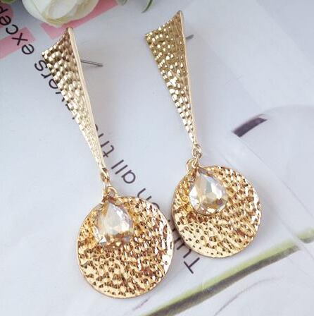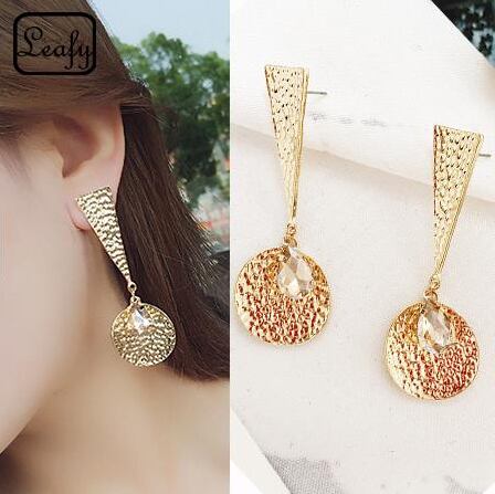 Leafy 異なる形を組み合わせた大きめゴールドプレートピアス 1ペア レディース 光を受けてキラキラ反射 存在感をアピール 三角 トライアングル サークル 円形 ジルコニア お出かけ イベント パーティー デート x09186a
