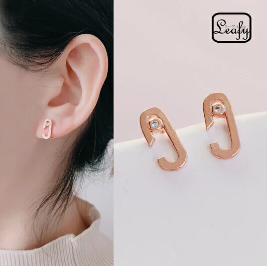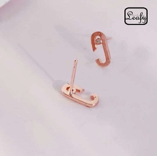 LeafyC型ミニピアス 1ペア ピンクゴールド レディース 小さくて邪魔にならないサイズ オフィスでも◎ 可愛い キュート 面白い 楕円 オーバル 輪 サークル お出かけ イベント デート お呼ばれ パーティー 食事会 女子会 普段使い プレゼント x09190apg