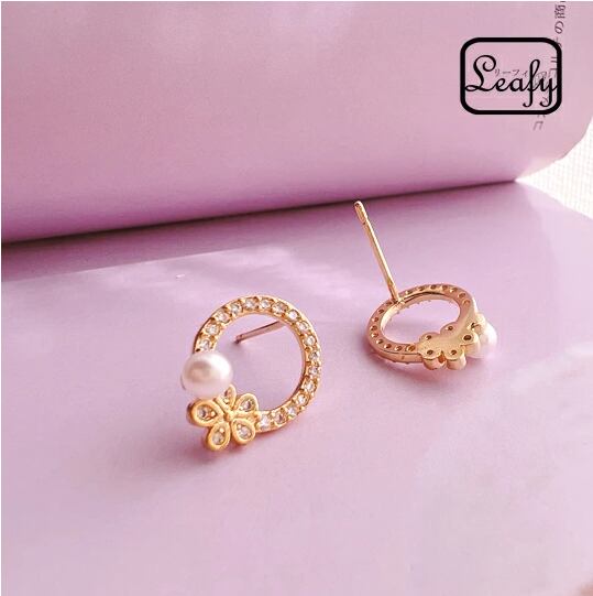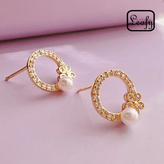 Leafy ちょこっとおしゃれに☆ベビーパール付きフラワーピアス 1ペア ゴールド レディース ミニ 花 真珠 可愛い キュート 面白い リング 輪 サークル お出かけ イベント デート お呼ばれ パーティー 食事会 女子会 普段使い プレゼント 冠婚葬祭 x09191ag 6月誕生石
