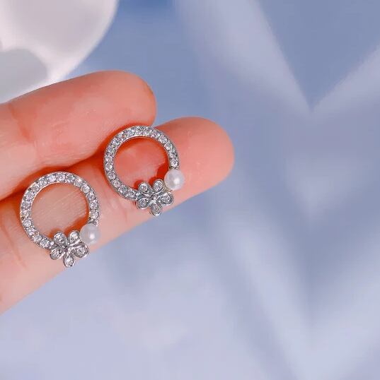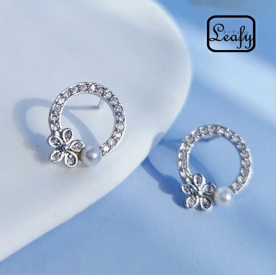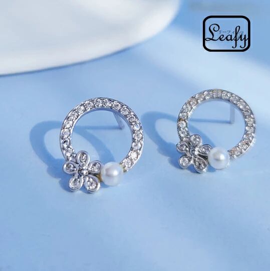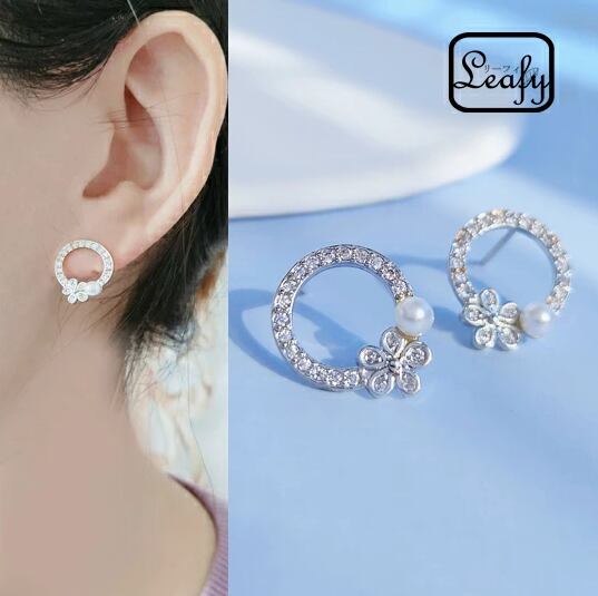 Leafy ちょこっとおしゃれに☆ベビーパール付きフラワーピアス 1ペア シルバー レディース ミニ 花 真珠 可愛い キュート 面白い リング 輪 サークル お出かけ イベント デート お呼ばれ パーティー 食事会 女子会 普段使い プレゼント x09191as 6月誕生石