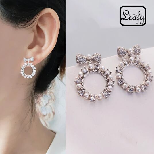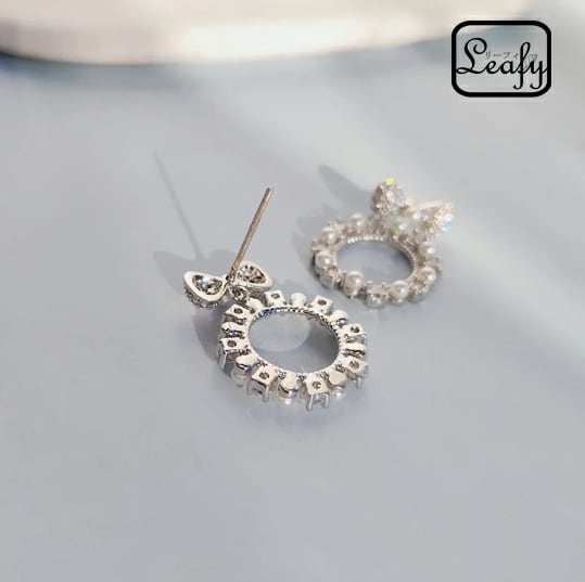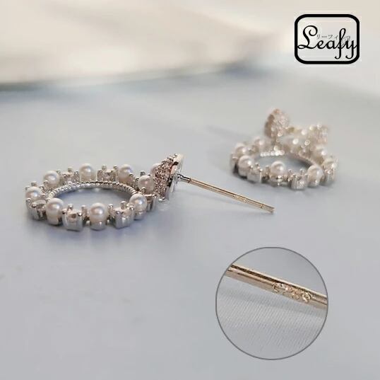 Leafy 甘さ抑え目シルバー☆大人フェミニン☆パールが飾るかわいいリボンピアス 1ペア レディース シルバー リング 輪 お出かけ デート お呼ばれ パーティー 食事会 女子会 普段使い フォーマルシーン プレゼント 冠婚葬祭 入園式 入学式 卒業式 卒園式 x09199as