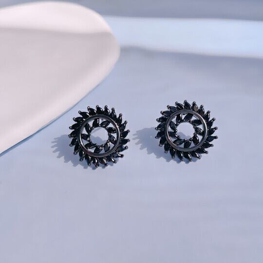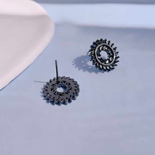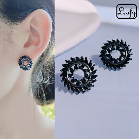 Leafy ブラックジルコニアでシックな雰囲気を☆古代の遺跡に描かれた太陽をイメージしたようなピアス 1ペア レディース メンズ 男女兼用 民族 部族 文明遺跡 ロマン 神秘的 車輪 普段使い お出かけ お呼ばれ パーティー 女子会 食事会プレゼント ギフト x09206abk