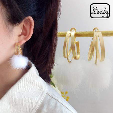 Leafy 秋冬のお洒落はこれに決まり♪あったかふわふわファーピアス 1ペア フレンチピアス レディース キュート 可愛い おしゃれ ゴールドリング ホワイト お出かけ イベント デート お呼ばれ パーティー 普段使い プレゼント x09234awh