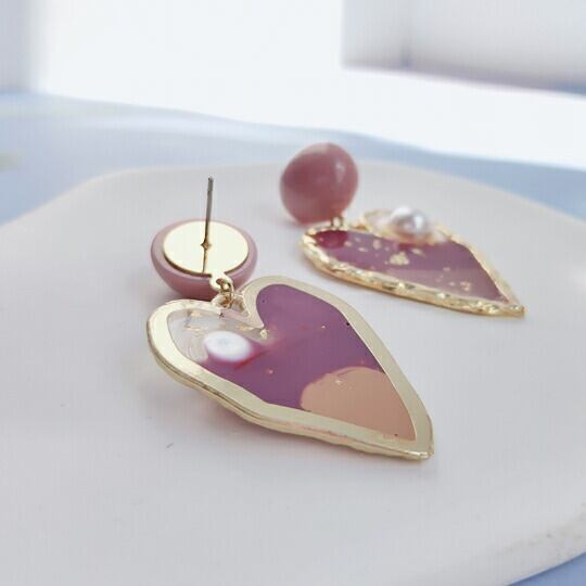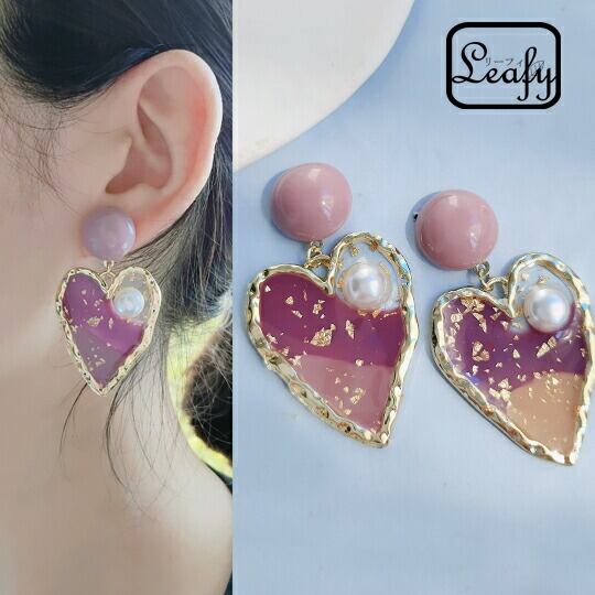 Leafy とびっきりキュート♪大きめハートとパールのレジンピアス 1ペア レディース パール ゴールド かわいい 華やか 女性らしさ アクセント 普段使い お出かけ パーティー 食事会 女子会 デート プレゼント ギフト アクリル x09255a