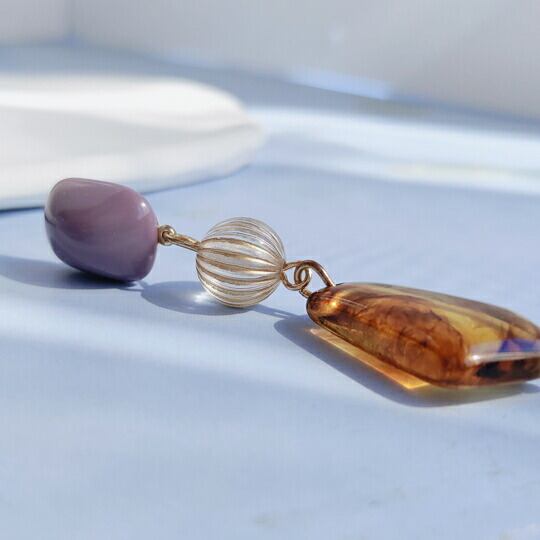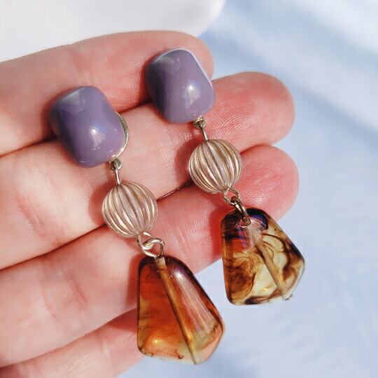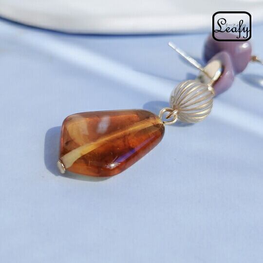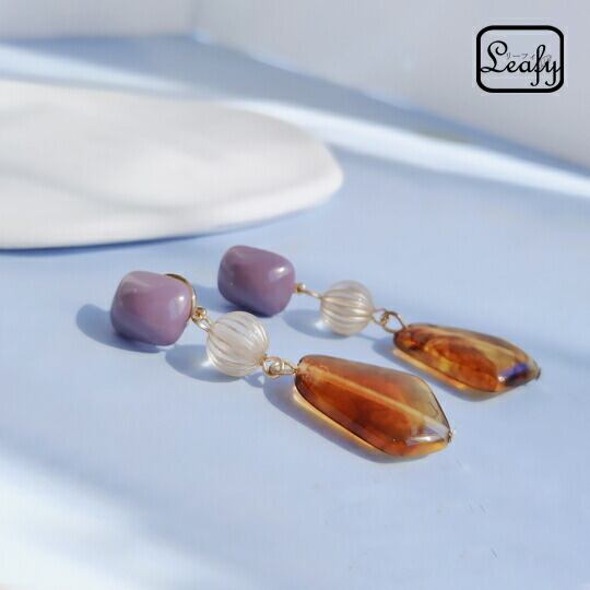 Leafy 異なるパーツを組み合わせた女性らしさ溢れるロングピアス 1ペア レディース ゴールド パープル 紫 べっ甲カラー ゆれ感 上品 エレガント お洒落 華やか アクセント アクリル樹脂 お出かけ パーティー 食事会 女子会 デート プレゼント 11月誕生石 x09260a
