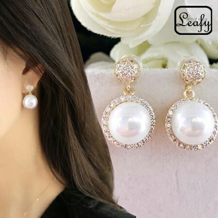 Leafy キラキラと美しい輝き☆パールの周りにジルコニアをあしらったゴールドカラーピアス 1ペア レディース エレガント 女性らしさ 普段使い お出かけ パーティー イベント 食事会 女子会 デート プレゼント ギフト 冠婚葬祭 入園式 卒園式 x09267ag