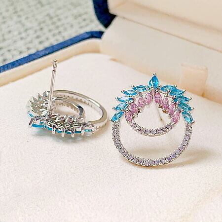 Leafy ひときわ美しい輝きを放つアクアマリン色CZダイヤとシルバーの組み合わせ 繊細で可愛らしいジルコニア ダブルリングのフラワーピアスレディース エレガント 女性らしさ 普段使い お出かけ パーティー イベント ギフトx09289asbl 3月誕生石