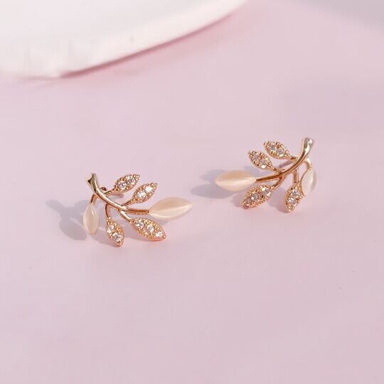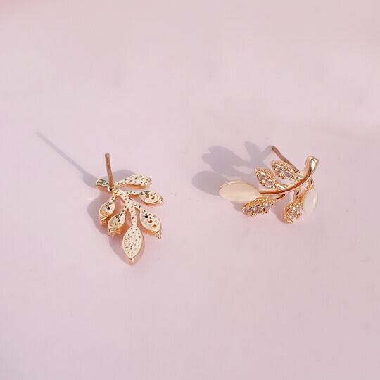 Leafy ジルコニアが煌くゴールドリーフのピアス 1ペア レディース 葉 ボタニカル 植物 自然 ナチュラル エレガント 上品 普段使い お出かけ パーティー イベント 食事会 女子会 デート 二次会 プレゼント ギフト x09308a 4月誕生石