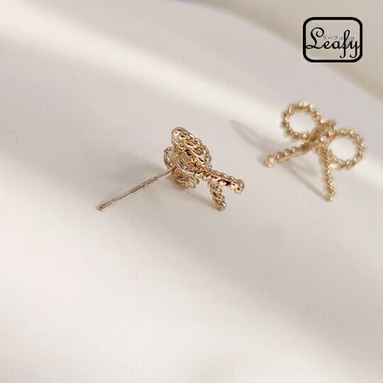 Leafy きゅっと結んだゴールドカラーのリボンピアス 1ペア レディース 大人かわいい シンプル 結び目 チャーミング ちょこっとおしゃれ 普段使い お出かけ パーティー 食事会 女子会 デート プレゼント ギフト x09314a