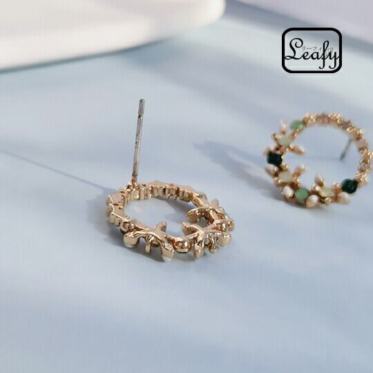 Leafy グリーンカラーのビジューが輝く、花冠のような愛らしいジルコニアピアス 1ペア レディース 花輪 フワラーフープ エレガント 上品 大人かわいい キュート お洒落 普段使い お出かけ パーティー イベント 食事会 女子会 デート 二次会 プレゼント x09322ag