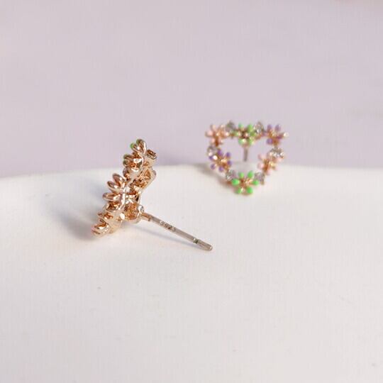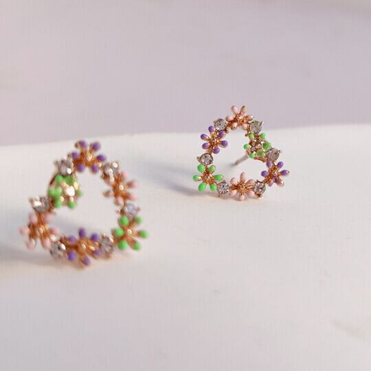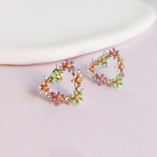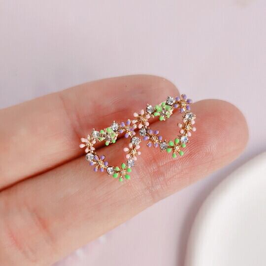 Leafy かわいいトライアングルの花冠ピアス 1ペア レディース 三角形 キュート フラワー 大人カワイイ ピンク グリーン パープル ゴールド ジルコニア ビジュー 花かんむり 普段使い お出かけ パーティー 食事会 女子会 デート プレゼント ギフト x09325a