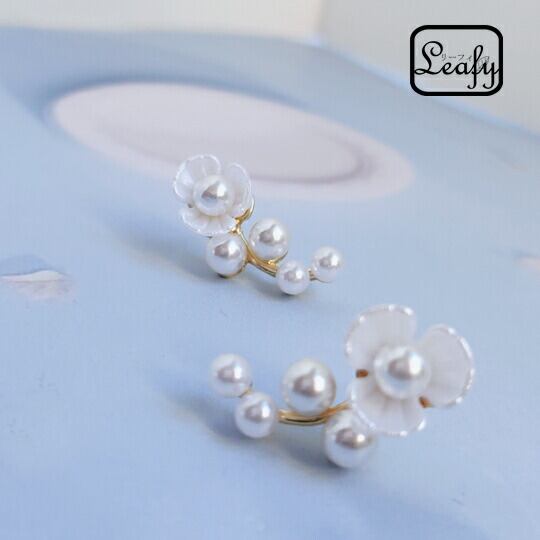 Leafy ゴールドの枝に咲くホワイトフラワーとパールのピアス 1ペア レディース 白 花 梅 上品 エレガント 優美 普段使い お出かけ パーティー デート 食事会 女子会 プレゼント 結婚式 x09327a 梅の花 4月誕生花 入園式 入学式 卒業式 卒園式