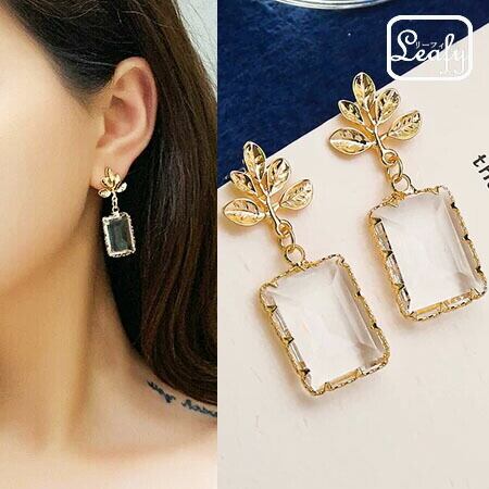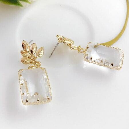 Leafy 煌くゴールドリーフのピアス 1ペア レディース 葉 ボタニカル 植物 自然 ナチュラル エレガント 上品 ガラス 普段使い お出かけ パーティー イベント 食事会 女子会 デート 二次会 プレゼント ギフト 夏祭り 透明 クリア人造水晶 x09333ag