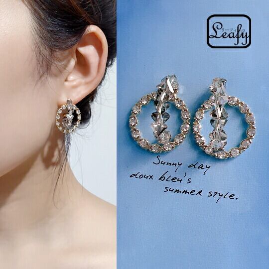 Leafy 魅力的に演出してくれるツーインワンタイプフープピアス 2WAYビーズときらめくラインストーンを組み合わせましたリングを取り外してハンマーフレームフープだけでつけることもでき、トレンドのアシンメトリーなルックも楽しめます ビジュー x09353a