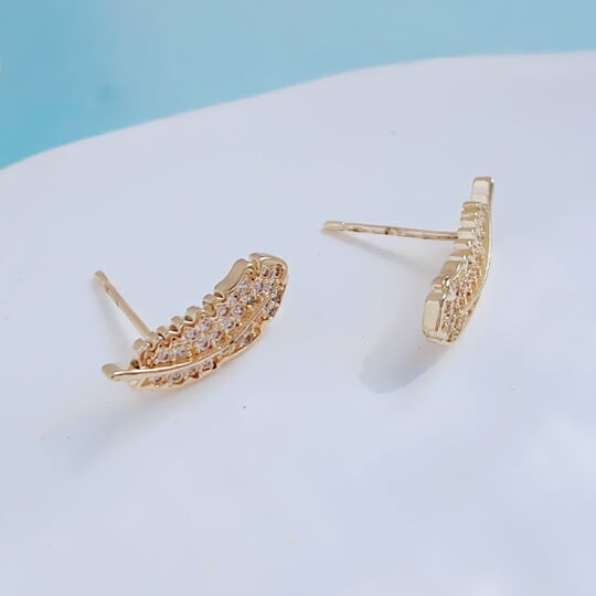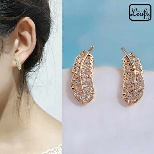 Leafy今シーズンのマストハブな羽根のモチーフを取り入れたエレガントなスタッズピアス トレンド感のある洗練された身につけやすいデザイン 秋冬のスタイルにロジウムコーティングのシックな輝きを添える優美なアクセサリーに仕上げています CZダイヤ フェザー ピアスx09359a