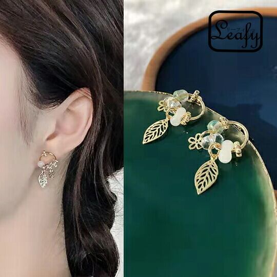 Leafy ならではの葉と花パーツ使いが可愛いビジューピアス 程よい大きさのリングにあしらわれた立体的なビーズ&リーフ フラワー が目をひきます 華やかな存在感があり、アップヘアの耳元におすすめのひと品 レディース 普段使い お出かけ 二次会x09363awh