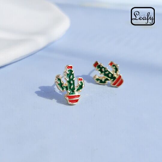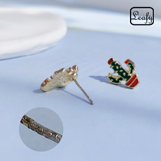 Leafy かわいい カクタスメキシカンピアス 耳元のさりげないアクセントに グリーンサボテン 植物 多肉植物 花言葉は「燃える心」「偉大」「暖かい心」「枯れない愛」 遊び心 お出かけ イベント食事会 女子会 デート 普段使い 面白い x09366a