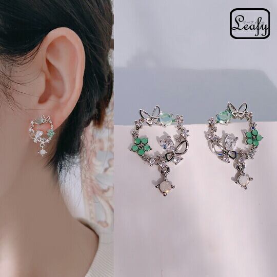 Leafy細部まで美しく繊細 立体的な花にCZダイヤの蝶が舞う華やかなデザインのピアス カラーストーンがきらめいて美しく輝きを放つ、ボリュームたっぷりのモチーフ 顔まわりをゴージャスに彩る 眺めていて飽きないピアス 蝶々 フラワー 普段使い 春 x09376asgr