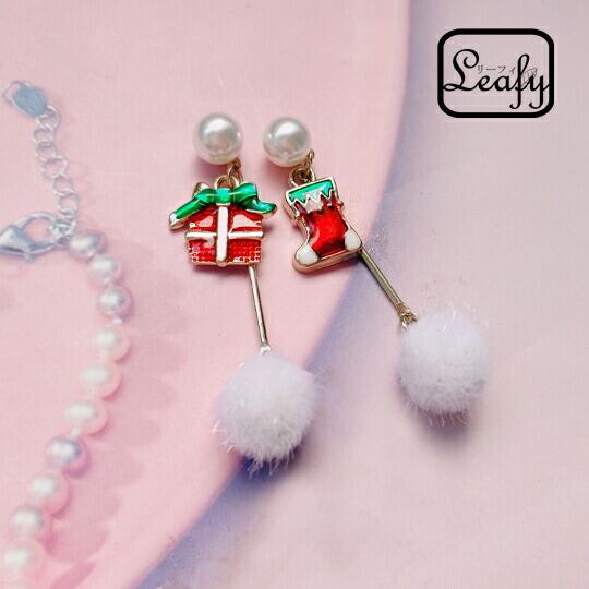 Leafy クリスマスオーナメントモチーフデザインの可愛いピアス クリスマス靴下とプレゼントの形にホッと癒されるデザイン 耳元もクリスマス気分で華やかに♪プレゼント 大人可愛いチェーンピアス レディース 二次会 お呼ばれ お出かけ 女子会 注目 x09381a