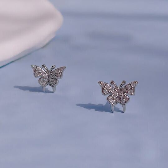 Leafy 空を舞う蝶々の優雅な美しさを表現しているCZダイヤピアス 耳元にキラキラ煌めくバタフライモチーフピアス キュービックジルコニアがゴージャスに輝き、大人ラブリーな印象です 普段のファッションにアクセントを与えてくれます プレゼント アゲハチョウ x09383a