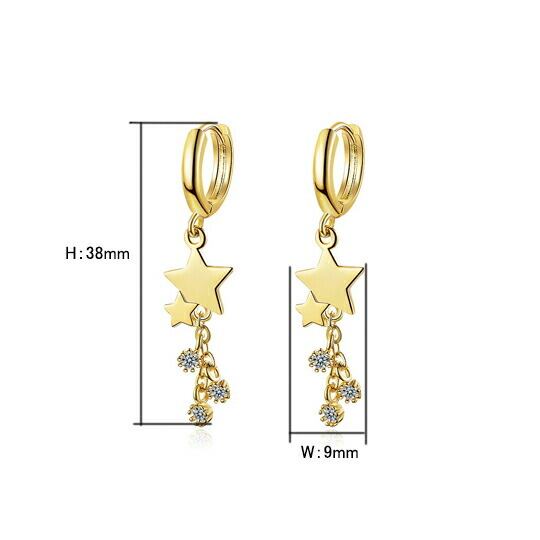 Leafy 流れ星のようなラインを描く、温かいぬくもりとキュービックジルコニア神秘の輝き、星モチーフピアス キラキラとしたメタルの繊細なタッセルが優雅に揺れる華やかなとピアスです 流星のようなイメージでデザインしましたCZダイヤピアスx09386ag