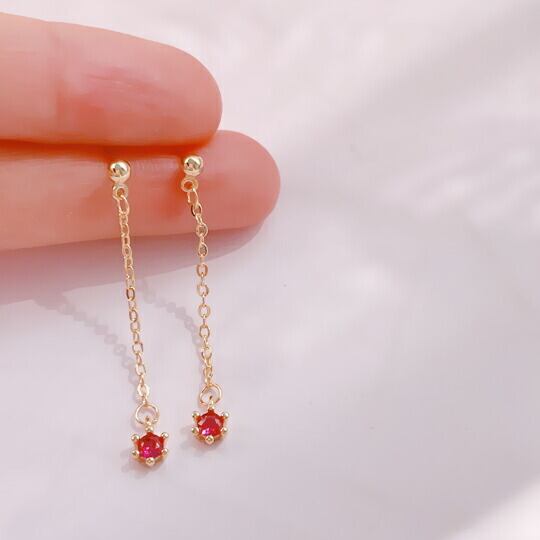 Leafy ルビー色 CZダイヤのしずくがエレガントに輝くレインドロップピアス ロマンティックな雰囲気 揺れるキュービックジルコニアがどこか儚げ、でも存在感はしっかりと 小さいぶり いつものコーディネートもワンランク上品に見せてくれそう x09394apk 7月誕生石