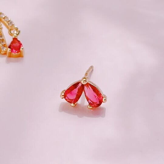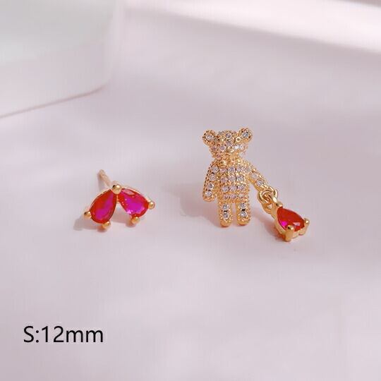 Leafy 一枚花びらを提げている可愛らしい表情のテディベア&フラワーピアス プレゼントにも喜ばれるアクセサリー 女心をくすぐるキュートなモチーフ キラキラのCZジルコニア敷き詰められています 高級感をアップ 熊 x09396ag