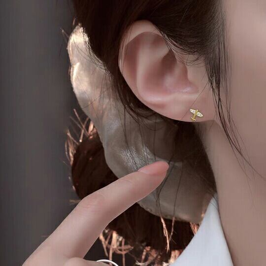 Terse かわいい小さな飛行機スタッドピアス、可愛らしいCZダイヤミニ航空機ピアス 旅行気分満載 おしゃれでかわいいミニピアス レディース メンズ 小さなサイズですがインパクトは抜群です オシャレで個性的なファッションのアクセントにオススメ x09399ag