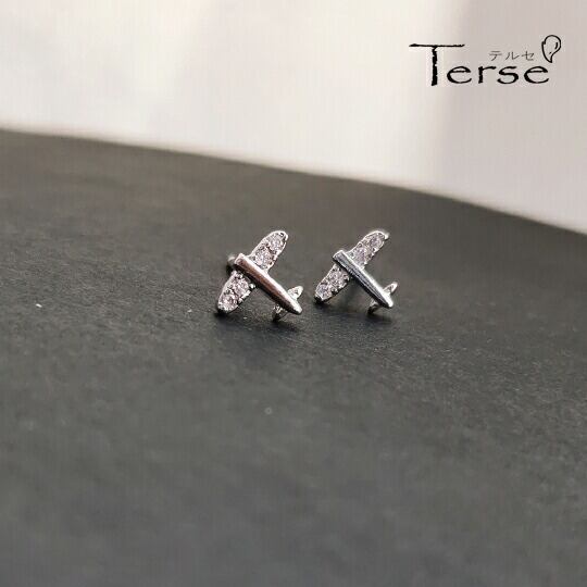 Terse かわいい小さな飛行機スタッドピアス、可愛らしいCZダイヤミニ航空機ピアス 旅行気分満載 おしゃれでかわいいミニピアス レディース メンズ 小さなサイズですがインパクトは抜群です オシャレで個性的なファッションのアクセントにオススメ x09399as