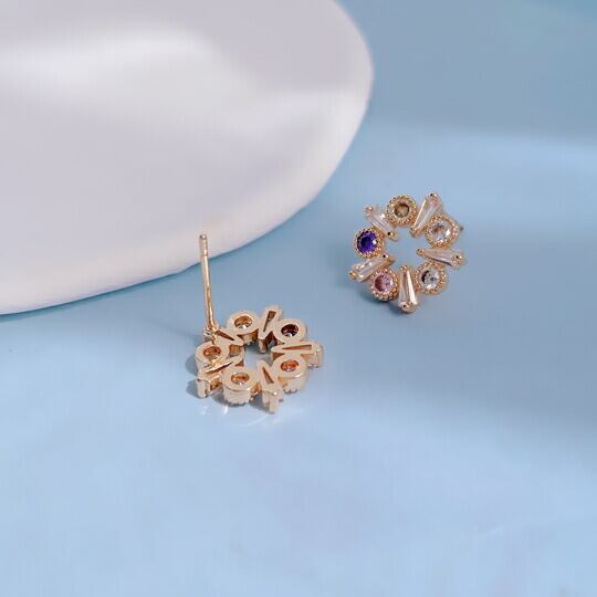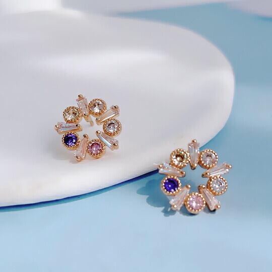 Leafy 耳元に咲く色違いCZダイヤの花輪モチーフピアスが、知性を引き出す ミル打ちのラインで花形を描き、空間を生かすことでキュービックジルコニアの輝きがより引き立つようになっています 大切な記念日や誕生日プレゼント 普段使い x09414a 11月誕生石