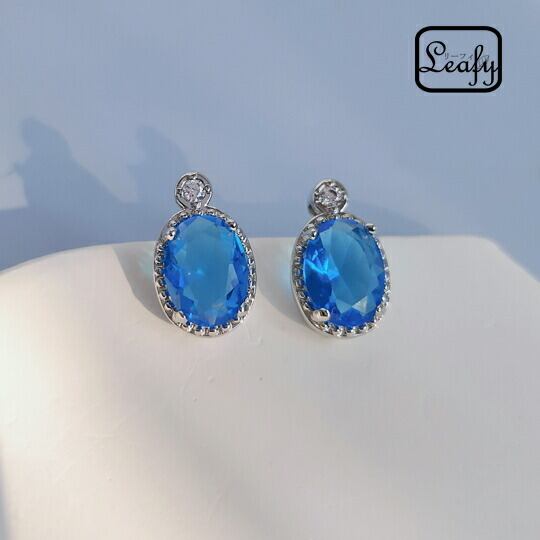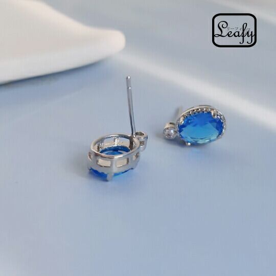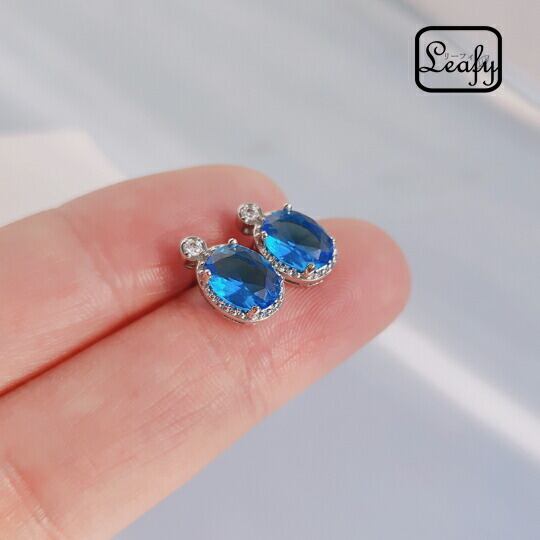 Leafy大粒のアクアマリン色キュービックジルコニアピアス 爽やかな色味のアクアマリン色CZダイヤを爪留めに仕上げました 甘いだけでは物足りない、でも女性らしさも忘れない 身に付けるだけで洗練された大人かっこいいスタイルにステップアップ 楕円形 x09417a